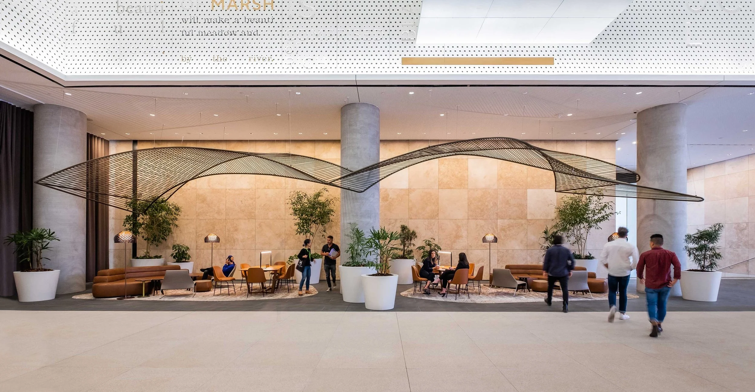 Two striking suspended artwork installations for the foyer of One Melbourne Quarter. Both artworks incorporated computational design and immersive technologies in order to facilitate efficient fabrication and on-site installation.